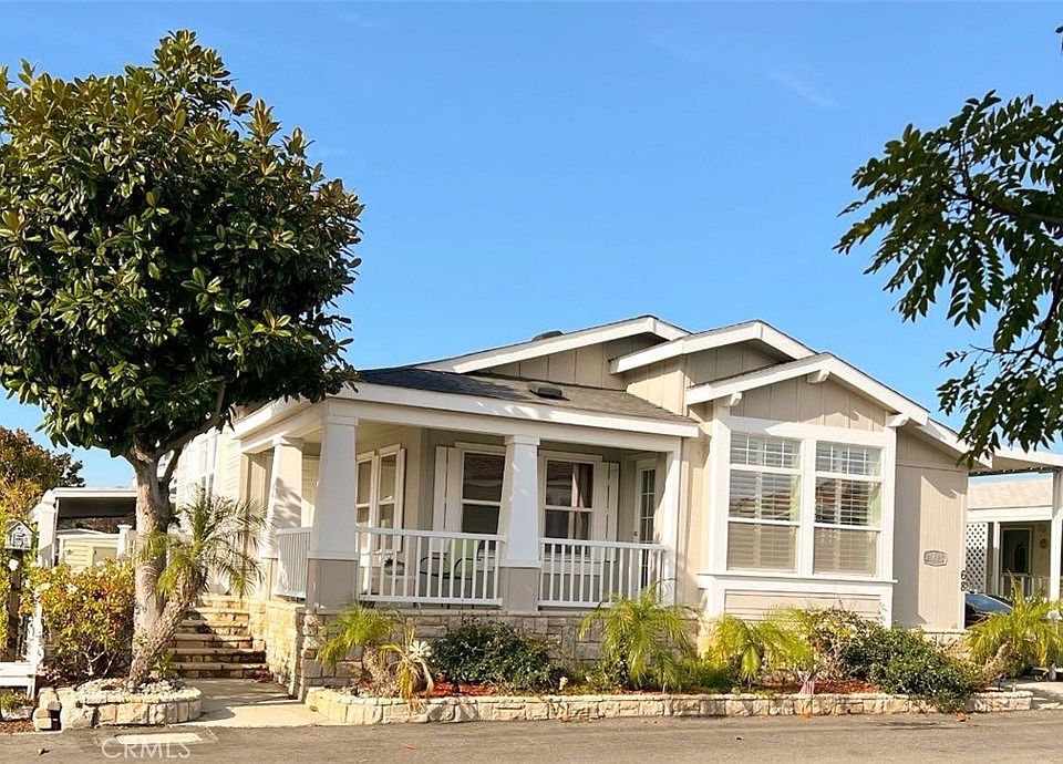 Welcome to Coastal Living in Huntington Beach! This home is part of a unique condominium community of manufactured homes where residents own their land (no space rent), and you are less than 2 miles from the Beach. Huntington Harbour Village is a hidden gem benefitting the 55+ age group. Enter through a wrap-around porch into the front-side entrance to an open floor plan; ideal for entertaining, with a large living room, formal dining room, island kitchen, and breakfast nook. Work at home with two double French doors leading into your office. Recessed lighting and high windows add a bright and cheerful feeling to this spacious, inviting home. The primary suite includes a large walk-in closet and spacious bathroom. Enjoy the cool ocean breezes of Huntington Harbor and in those rare times turn on the central air conditioner when needed. Appreciate all the amenities with low HOA dues that includes a large outdoor community pool, spa, beautifully remodeled clubhouse, fitness gym, putting green, covered barbecue area, and a smaller clubhouse to gather around an outdoor fire pit. Located close to tennis courts, shopping, Trader Joe?s, or enjoy kayaking, paddle boarding and tranquil lazy days at the beach. Come see this pleasant, quiet, home in a wonderful location and friendly new neighbors.