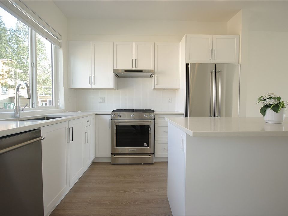 GST INCLUDED- BERKELEY VILLAGE. South Surrey's best value! This bright 3 bed & den, 2.5 bath home offers an open concept floorplan with superior features- KitchenAid stainless appliances, gas range, powder room on main and SIDE BY SIDE double car garage. Over height ceilings on the main, a spa inspired ensuite feat. frameless glass rain shower and more. Entertain outdoors on your private balcony and a fenced yard perfect for pets. Walk 2 min to future elementary school, close to Grandview Corners, Morgan Crossing Shops, aquatic centre, beach & quick access to Hwy 99. Don't miss out on this one.