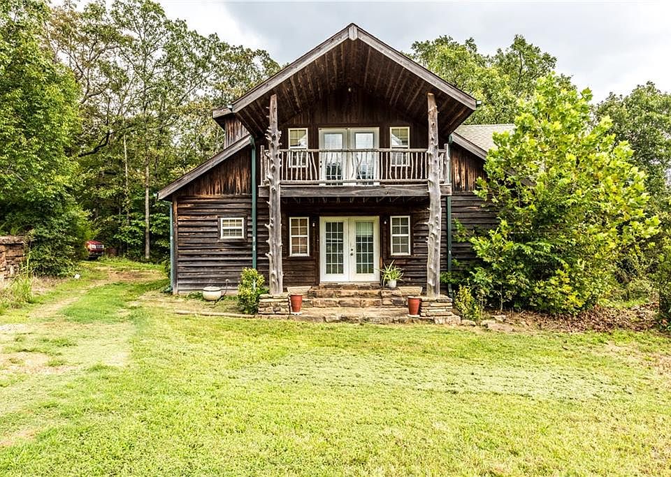 Beautiful Views! Sitting on 5.00 acres MOL, this 3DB/2BA cabin like home features cedar exterior, wood floors throughout Living Room, gorgeous abundant cabinetry in kitchen, tiled counter tops, SS appliances, spacious bedrooms, second living area upstairs and covered balcony overlooking the your gorgeous acreage & views!