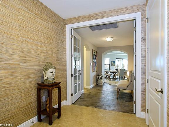 Imagine the elevator opening to your very own private foyer entry of 2,930 square feet under air with 3 beds + den and 3 & 1/2 baths. Walk through French front doors to an open floor plan featuring a great room, dining area and gourmet kitchen with porcelain tiled floors. Over $50,000 of upgrades! Kitchenaid stainless steal appliances, trash compactor, bar with 2 wine coolers, quartz counter tops, soft close cabinet drawers, & natural gas cooking. Fully screened 704 sq ft wrap around loggia with lake and Clubhouse view. Enjoy sunsets with N/W facing exposure. This unit is located opposite side of the garage entry drive. "Carrara" @ Talis Park includes 90 spacious penthouse style units of maintenance free condo living with their own private subdivision pool and grills. Talis Park's golf course was designed by Greg Norman and Pete Dye and is ranked by Golf Digest as one of Florida's top 20 courses. Within walking distance to the driving range & new clubhouse (voted Clubhouse of the year 2016 by Golf Inc. Magazine!) "Vyne House" offers a Pilates/Yoga Studio, Core Fitness Center & Esprit Spa plus Fiona's Market Café! Mandatory social membership $35,000 & golf membership optional.