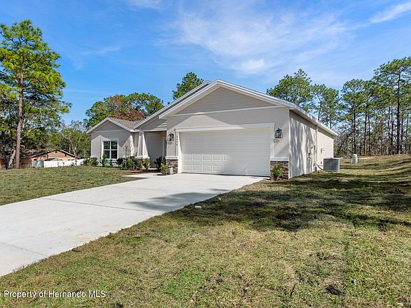 READY TODAY!!!! Welcome to your brand-new sanctuary nestled in the captivating Nature Coast, where the allure of the Gulf of Mexico meets the convenience of easy access to Tampa, Orlando, and Gainesville. This freshly minted 4-bedroom, 2-bath, 2-car garage home awaits your personal touch. Explore its spacious split-plan layout situated on a generous .46-acre plot without any HOA or CDD fees. This property offers a sense of freedom and flexibility. Immerse yourself in the high-quality craftsmanship and materials that adorn every corner. The kitchen takes center stage with its exquisite stone countertops, inviting island, soft-close drawers and cabinets, and a set of stainless-steel appliances including a microwave, dishwasher, refrigerator, and range. The home exudes comfort with beautiful luxury vinyl throughout, while all wet areas boast stylish tile. Easy and efficient fold-in low-e vinyl windows for easy cleaning, a garage door opener, and numerous energy-saving elements enhance the property's appeal. Seize this opportunity to make this meticulously crafted home your next haven. Call today to embark on your journey.