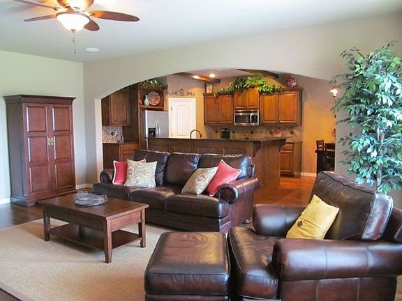 Great Corner Lot In Trinity Creek Granite countertops, corner pantry, custom cabinetry, stainless appliances. 600 sqft patio and gas fire pit master suite has a vaulted/beamed ceiling, zoned sprinklers, security system, extensive hardwood floors and full energy package.