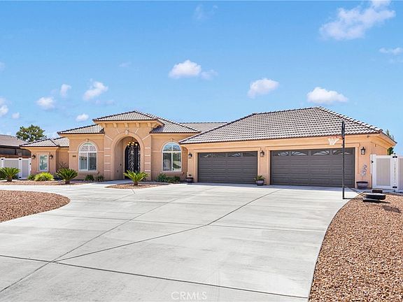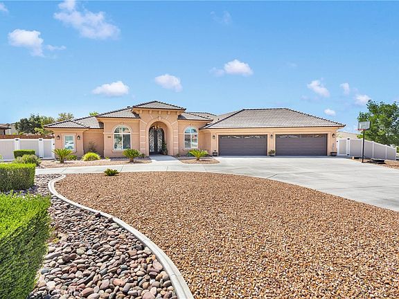 Executive living at its finest in this custom home nestled in the heart of Apple Valley’s desirable Desert Knolls neighborhood. Baze Built, a premier high desert builder, included beautiful architectural details and quality custom throughout. Gorgeous entry flows into the open concept family room, hosting a massive, floor -to -ceiling wood burning stove fireplace insert. Impressive designer’s dream kitchen with cabinets galore, granite counters, center island and cozy kitchen eating nook. Split floorplan with the primary bedroom including ensuite bath, dual vanities, granite counters, pristine glass shower and wonderful soaking tub. Extra spacious walk-in closet allows for plenty of storage, An additional 3 beautiful bedrooms , formal dining room. indoor laundry and office compliments this elegant layout. Plantation shutters throughout and water conserving front landscaping, Huge half-acre, fully enclosed lot with a four-car garage, one is a drive through, giving you direct access to your backyard. This exceptional home offers elegance, comfort and an unbeatable location. CLEAN – CLEAN – CLEAN!