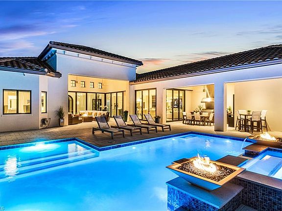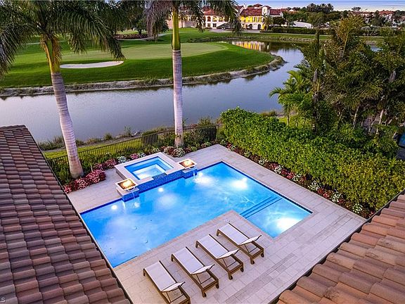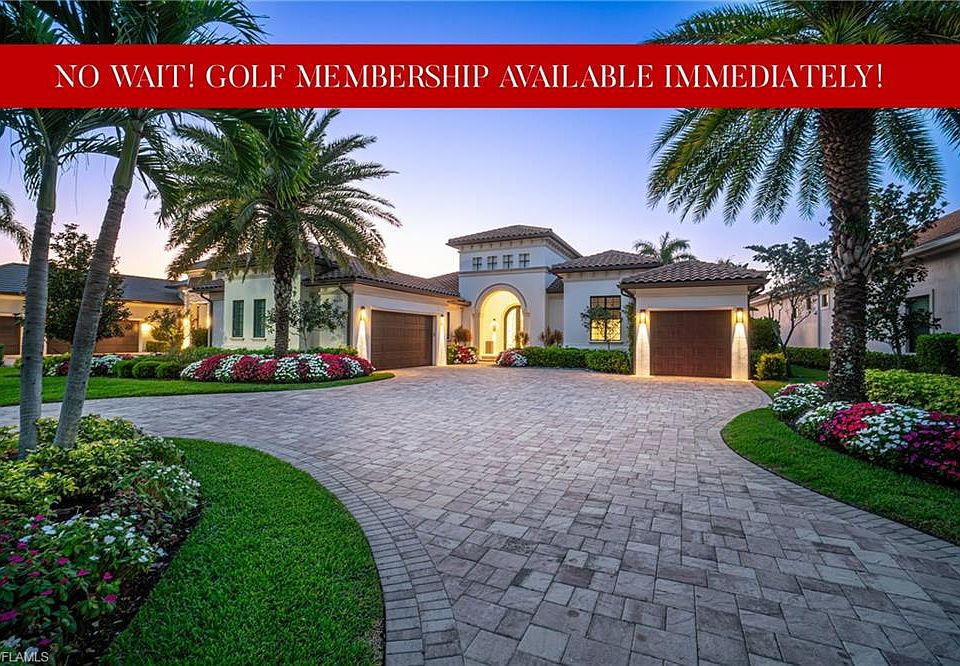 IMMEDIATE GOLF MEMBERSHIP AVAILABLE! Beautiful state-of-the-art masterpiece with unobstructed golf course and lake views offered in coveted Talis Park! Enjoy the 9th hole fairway, serene lake & Talis Park clubhouse from the comfort of your backyard! This contemporary delight features a 3-car garage, 4 bedrooms + den, & 4.5 bathrooms, including a private casita. Only the finest features & finishes can be found in this home including 2 new whole-house generators (2023), hurricane impact windows & sliders, Lutron lighting system, marble flooring & a redesigned entry with soaring high coffered ceilings. Open floor plan & zero corner pocketing sliders create a seamless transition from the sophisticated interior to the outdoor oasis with a pool/spa, sun shelf, outdoor fireplace, fenced yard, electric retracting screens & summer kitchen, which includes a sink, grill, burners & mini fridge. The backyard has been upgraded to provide an exceptional entertaining experience, featuring a newly added spa with a water feature & fire pits, as well as a resurfaced pool. Chef’s kitchen offers white cabinetry, glass tiled backsplash, granite counters & high-end appliances including a Viking stove top, microwave & double oven, Sub-Zero built-in fridge & full-sized wine fridge and new Bosch dishwasher. The spacious primary suite features sweeping golf course views, private entry to the lanai, dual walk-in closets & a spa-like bath with dual vanities and an expansive shower with multiple showerheads. Other features include 2 new mini-split HVACs (2023) servicing the garages, Sonos sound system, intercom system, Hunter Douglas electric blinds, new large capacity Samsung washer/dryer, new interior painting in all main living areas, new updated landscaping, new outdoor electrical for entertaining & holiday lights and linear AC vents. North Naples’ coveted Talis Park community offers a newly renovated award-winning golf course, private beach shuttle, multiple restaurants, state-of-the-art fitness center, spa, tennis, bocce & pickleball. This extraordinary home exemplifies the epitome of luxurious golf course living.