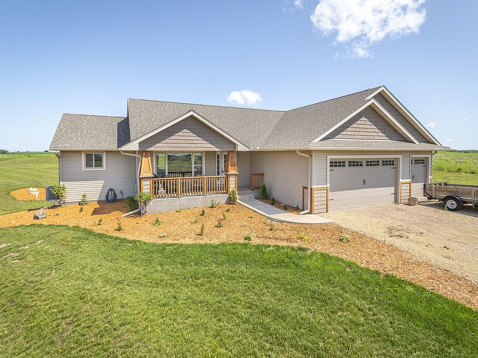 Welcome home to your new home in Hammond, WI. Build in 2017 this home is on just over 2 acres and includes 2 main floor bedrooms and 2 full bathrooms. Hickory natural wood flooring on the main level. Custom cabinetry, trim work and doors are all in Popular wood with a beautiful dark stain. Master includes walk in closet, tray ceiling with a ceiling fan, full master en-suite with dual sinks, separate soaking tub and shower. Lower level has look out windows and is unfinished just waiting for your imagination. Laundry is on the main level just off the heated, insulated and fully finished garage. Plenty of room for all the toys or create a workshop in the garage. Book an appointment today to see this home!Lower level bedrooms in the process of being finished currently. Buyers can choose colors
