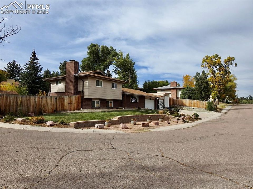 Well maintained and updated home on 1/4 of an acre, corner lot. Outside there is custom landscaping with over 100 flowers on a drip system, extensive drainage system, auto sprinklers, a 36 x 10 covered patio, 2 storage sheds, a 2 car attached garage and a 1000 sq ft detached garage. The interior has been remodeled with new LVP flooring on the main level. The kitchen has hickory cabinets, lots of counter space, custom backsplash, and stainless steel appliances. Newer lighting throughout the home. Upstairs there are 3 spacious bedrooms and a full bathroom with custom tile work, new cabinet, toilet, mirror, and flooring. Head down to the lower level and there is a large family room with wood fireplace, 4th bedroom that has a separate entrance to back yard, and an updated bathroom with custom tile work in the shower, tile bench, new cabinet, mirror, toilet and flooring. The 2nd garage has insulation, lighting, 220v, heat, 2 separate garage doors, concrete floor, and room for at least 6 cars. The electric panel and A/C was done in 2015. Award winning district 12 schools. Close to shopping, restaurants, and I25.