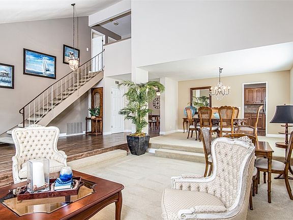 - Ceiling Fan(s), Crown Molding, Cathedral Ceiling(s), Dry Bar, Separate/Formal Dining Room, Granite Counters, Open Floorplan, Recessed Lighting, Sunken Living Room, All Bedrooms Up, Dressing Area, Galley Kitchen, Primary Suite