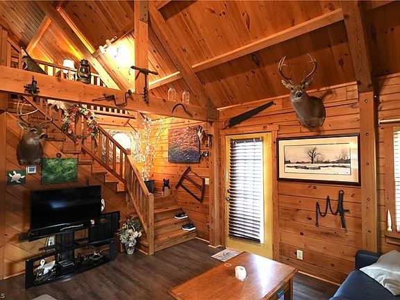 Escape to country living at its finest in this beautiful 2-bedroom, 1-bathroom log cabin with a loft, perfectly situated on a spacious 0.89-acre lot just minutes from Yadkinville. This cozy yet well-appointed home offers the perfect blend of rustic charm and modern convenience. Step inside to laminate and luxury vinyl flooring throughout the main level, while the loft boasts stunning pine wood floors—a warm and inviting space perfect for a guest area, home office, or relaxation nook. Updates include a new metal roof (2021), American Standard HVAC system (2020), new windows (2020), and a new pressure tank (2019). It has a fenced-in backyard, perfect for pets and entertaining, as well as the storage building and chicken coop for added homesteading potential. The detached carport provides convenient covered parking. The refrigerator, washing machine, and dryer convey with the home, making this a truly move-in-ready opportunity.