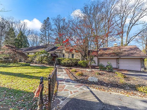 Privacy and serenity await in this beautiful three-bedroom, two-bathroom home nestled on a verdant 0.83-acre lot in desirable Abington Township. A flagstone path welcomes you inside this spacious and bright 2,263-square-foot single-level residence featuring a wonderful open floor plan, pegged hardwood floors and abundant windows. A marble foyer with atrium windows opens to a beautiful den featuring a massive stone fireplace, coffered ceiling and sliding glass door. Step up from the entry into gorgeous entertaining spaces, including lovely dining and living rooms separated by a two-sided, painted brick fireplace. Wide windows frame picturesque wooded views while handsome millwork adds a sophisticated touch. Sliders here open to a stunning atrium area perfect as an office or relaxing sunroom. The eat-in kitchen offers excellent cabinet space, glorious natural light and a second entrance that opens to a secluded front patio, perfect for al fresco dining surrounded by a fenced lawn area and towering trees. Down the hallway, you'll find an expansive primary suite featuring a deck and an en suite spa bathroom with a soaking tub and shower. Two secondary bedrooms flank a windowed hall bathroom with a large tub/shower. Below, a basement adds a laundry area and storage space to this fantastic layout. This home boasts a huge yard alongside its lush greenery and exceptional privacy. A stone façade adds incredible appeal, while a two-car detached garage and long driveway provide plenty of parking. Located on an extremely quiet street with no outlet, this home feels worlds away but is just minutes from top-rated schools, great restaurants and excellent shopping, including Trader Joe's and Whole Foods. Easy access to major highways and train stations make commuting a breeze. This beautiful home has been lovingly maintained and thoroughly enjoyed by the same family for 22 years - move right in or bring your decorating ideas and make it your own.