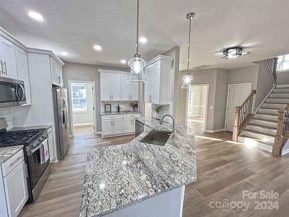 With over $60,000 in renovations, this 4br, 2 1/2 bath two story home offers a beautiful new kitchen with granite counter tops, all new cabinets, fixtures, new appliances with gas range and oven. Downstairs offers a flex space for an office or dining room. New continuous vinyl plank floors throughout the house offer durability and easy care. Beautiful new stairs and handrails lead you upstairs to a Primary bedroom with French doors leading to the primary bathroom with new tile shower, garden tub, dual sinks with granite counter tops on new cabinets and a large walk in closet. There is a large bonus room/flexible space suitable for an additional bedroom, family room or office. There are two new Gas HVAC Split Systems for your comfort The Lantern Green Community offers a large pool and tennis courts with the 3 mile Irish Buffalo Creek greenway close by. There are parks is nearby with t quick access to uptown Kannapolis with Atrium Park, and downtown Concord. I85 is just minutes away.