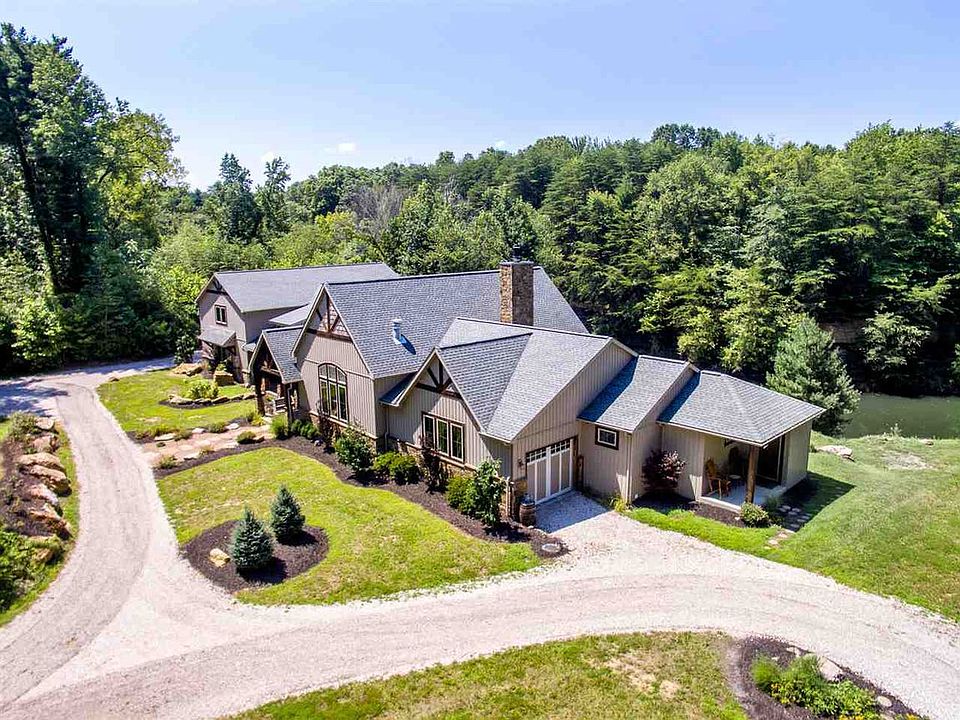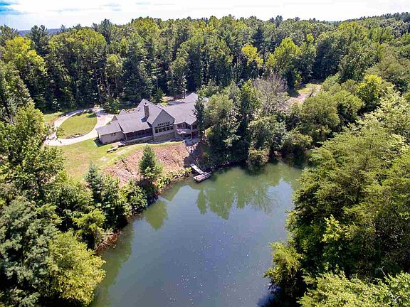 Custom built lodge style home, with the most beautiful views you can find anywhere. Built in two phases- 2008 & 2012 and designed by McCullough. Five bedrooms, three full and three half baths. Located on the water in 70 acres of seclusion with trees and wildlife to be viewed from several angles from each room. Entertain large groups or a private get together in the lodge room with vaulted wood ceilings and a huge custom made fireplace. also includes a large in-law suite or man cave with its own kitchen. The main kitchen is a chefs dream with custom made amish cabinets using quarter sawn white oak and quartz counter tops a huge walk in pantry. large screened porch for nature viewing and relaxing, grilling porch for the outside cooking, functional and beautiful office with a great view to the outside. three car attached garage and a one car attached garage. Six panel solid wood doors throughout, Great hunting and fishing and so much more.