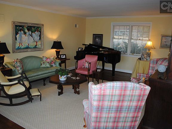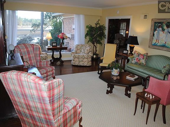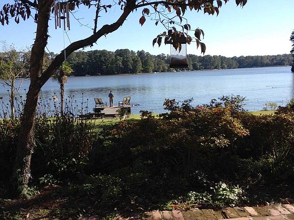 Enjoy long views of Lake Katharine from nearly every room in this home! At this property, you'll find a rare single-story, brick ranch house with hardwood floors and no steps to navigate. A big, beautiful master suite was added in 2008 that overlooks the lake and features cathedral ceilings, French doors to the patio, a big walk-in closet, and a very nice private bath. The other two bedrooms have private baths, too. The big, cozy den has pecky cypress paneled walls, a fireplace, a wet bar, and overlooks the lake. The living and dining rooms are gracious and also overlook the lake. You'll also find a greatroom/ playroom with a full bath, an office, and a big laundry room. The lot gently slopes to the lake and is beautiful and mature.
