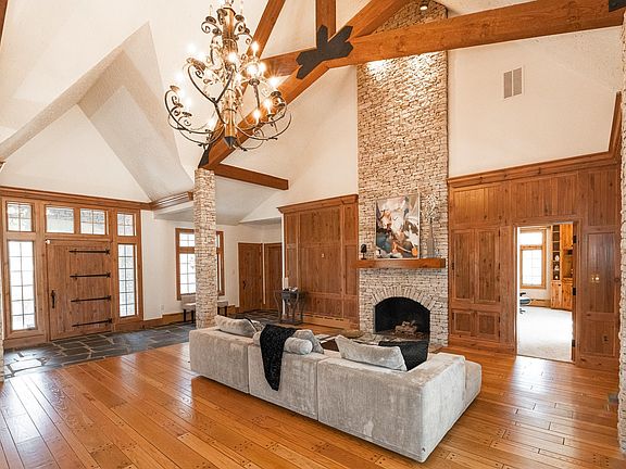- 1st Bdrm En Suite, Bookcases, Cathedral Ceiling(s), Ceiling Fan(s), Beamed Ceilings, Walk-In Closet(s), Crown Molding, Eat-in Kitchen, Entrance Foyer, Kitchen Island, Natural Woodwork, Double Vanity, Stand Up Shower, Tub and Separate Shower, Tub/Shower Combination, Main Level Bedroom Suite, Formal Dining Room, Great Room, Custom Cabinetry