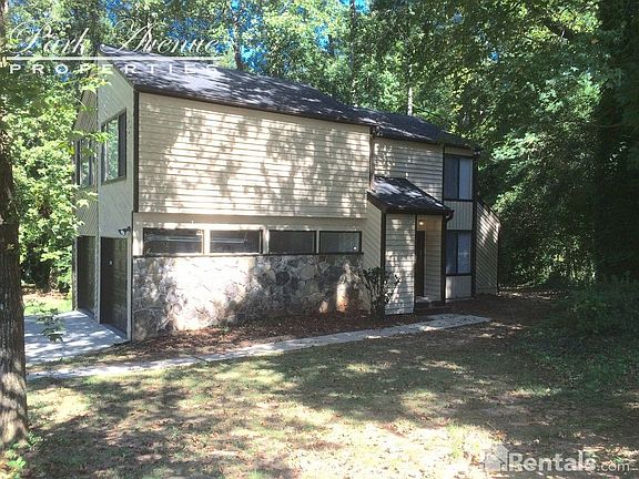 Rent Special: One month FREE! This charming home with stone detail and a 2-car garage is located on a 0.4-acre wooded cul-de-sac lot. The family room features a beautiful fireplace with a raised stone hearth and stylish hardwood floors! The kitchen offers loads of work space and cabinetry for storage. An upper microwave niche gets your microwave off the counter and out of the way to maximize the space! Updated stainless steal appliances provide style and reliability! Upstairs, the master bedroom features a sitting area with a bench and his and hers closets. In the backyard, a beautiful deck shaded by mature trees is the perfect spot to entertain or quietly enjoy the outdoors. A grassy area beyond the deck provides a nice outdoor space for kids to play and pets to explore. Easy access to I-20 and I-285, close to shopping, dining, and schools, and within walking distance to Biffle Park!