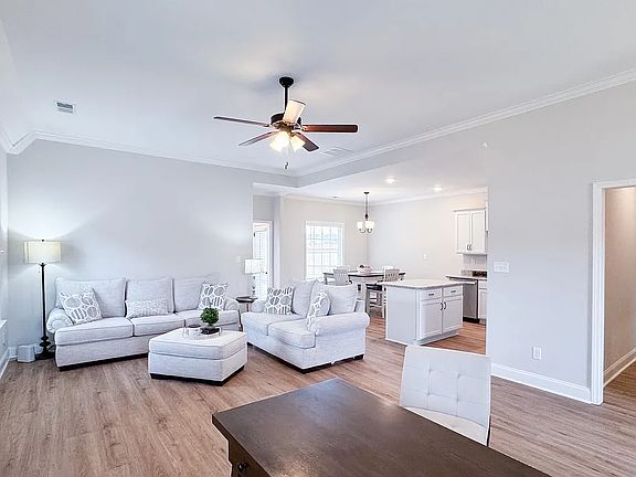 Located just minutes from Desoto Central High School, Snowden grove, Silo Square, and so much more! Entering the home, you will find LVP floors that flow through the halls, eat-in kitchen and family room. The large family room has a gas log fireplace to keep you warm on the cooler nights ahead and crown moulding throughout the main living area. The kitchen has beautiful white cabinets, granite counter tops, and a center island perfect for bar stools. On one side of the downstairs, you will find the main suite with tray ceilings. You walk into the bathroom with a large tile shower, stand-alone tub, vanity with two sinks, and a large walk-in closet. On the other side of the downstairs, you will find two more bedrooms, a bathroom, and utility room with LVP flooring. Upstairs is a large bonus room with a closet (4th bedroom). 9 ft ceilings throughout downstairs and a nice patio outside to grill! (HOUSE IS NOT FURNISHED