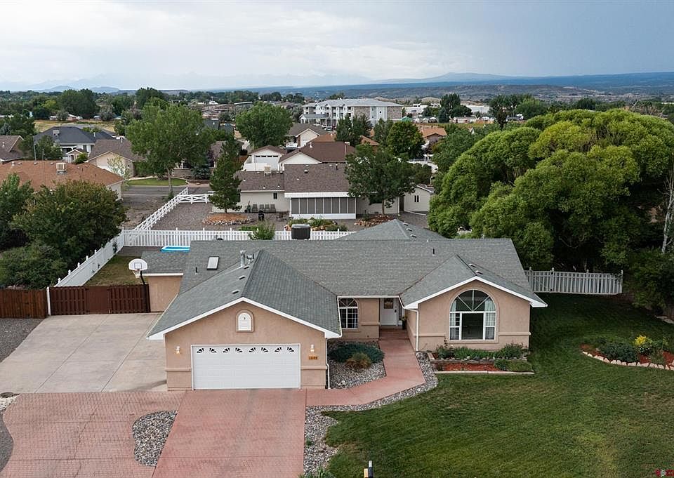 Vista San Juan Property with Sprawling Irrigated Acreage and Huge RV Parking Space Nestled in a Prime Location! No HOA to worry about, yet located in a well-maintained neighborhood. This well-appointed location provides quick access to south Montrose amenities while still delivering a private neighborhood setting. The home sits on a lush and green lot with mature shade trees, sprawling lawn, and cost-effective irrigation water to keep it all in top condition. The fully fenced backyard is massive and includes a dog run for your furry friends. The outdoor living area will provide years of enjoyment and entertainment with loved ones and friends. The home features a split floor plan for privacy along with an open kitchen and living area. The main bedroom sits away from all the activity and includes a side office with views of the peaceful back landscaping. Lightning-fast fiber internet comes pre-installed for all your work/school from home needs. An extra entertainment and game room gives extra space for the young at heart to play, connect, and entertain! Make This American Dream Come True for You and Your Loved Ones; Take A Tour Today!