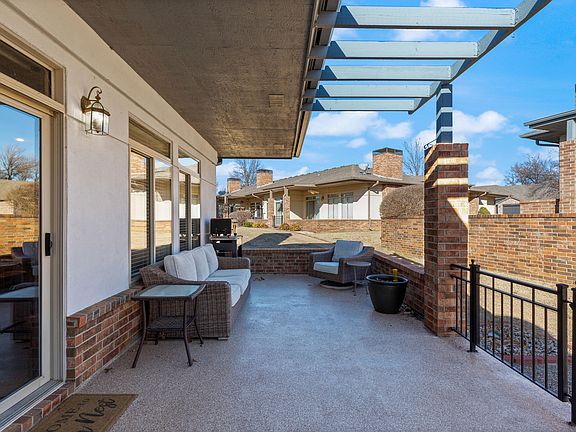 Cedar Oaks Leisure Living is a 55 + Senior living development. You will enjoy this peaceful lake-side community, which features a Clubhouse with a library, game room, workout room, community room with fireplace, and a full kitchen. An outdoor area that features an inground pool, sundeck, and covered patio. This home offers many special features, a living room with an electric fireplace, flanked with built-ins. A spacious Kitchen, granite countertops, tile flooring, loads of storage, formal dining room, primary suite with patio access, his and her mirrored closets, private bath features 4'x6' zero entrance shower, and double sink vanity. The guest bedroom features a sunroom/ office area. Guest Bath with tub/shower and single sink vanity. HOA $385.00 monthly, Lawn & exterior & Ins. HVAC 2 years old, New laminate floooring, New hardware thoughout the home, Fireplace Electric, New interior paint, New kitchen sink, Storm Shelter in Garage 6'x4', painted Garage floor,