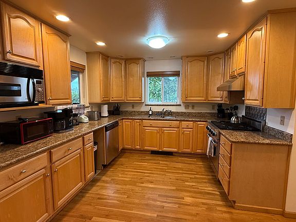 This beautifully maintained and updated Downtown home with views on a corner lot overlooking the inlet! Walk in to the main floor where you'll find a gourmet kitchen that features hardwood flooring, stainless steel appliances, granite countertops and built-ins, a dedicated dinning area with wet bar, large sliding doors that lead to a large covered patio with views of the inlet. Off the kitchen is a cozy family room area with a fireplace and half bathroom and side access out to the backyard. Upstairs is the private master suite! Hardwood throughout and vaulted ceilings in the bedroom with skylights and a second private balcony just off the bedroom with more inlet views! A large private bathroom with soaker/jetted tub, separate closet spaces and even a sunroom off the back of the bathroom with another hidden privet balcony! Downstairs from the main living space you'll find two other bedrooms and another full bathroom. There is a dedicated laundry area downstairs along with a lot of storage space! Finally, access out to the two car garage and a second smaller garage area. The large back yard with shrubbery as fencing makes for a lovely private area to entertain or enjoy a lovely fire in the fire pit. Call today as you don't want to miss this opportunity! This unit will be Unfurnished. 12 Month Lease Minimum. No Pets. No Smoking.