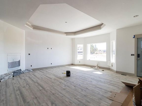 Upgrades throughout in this New Construction! Elegant luxury plank flooring, granite counters, a dream kitchen with a huge island, prep sink and bar seating, plus a charging/docking station that can double as a coffee bar. Formal dining room with a den/office off of it with double sliding barn doors. The huge Living Room has a tray ceiling and a gas fireplace with beautiful rock face. Master Bedroom has a big walk in closet, 5 piece bath has a free standing soaking tub and walk in shower with rainfall shower head. The other 2 bedrooms are great sizes with amazing views. Laundry room is large and includes a walk in storage/pantry closet off the 2 car garage. Stamped concrete in the front and down the full concrete driveway, the back covered trex deck is 24 x 12, and you will love the amazing mountain views! . On demand tankless hot water! This homes is the icing on the cake. Schedule your showing today! You can have horses in this area, and nearby trails. Expected completion date is late November/first week of Dec. (Photos include the construction of this home and of previous built home)