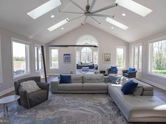 <<<<<<ALL FURNITURE IS INCLUDED IN THE SALES PRICE>>>>>>>> Welcome to this bright and spacious 5-bedroom, 6 1/2-bathroom home nestled on a charming lot (3.24 acres) adjacent to the rustic Bucks County countryside. With close to 9,000 sq ft (approximate figure coming from prior listing ) of living area spread over two floors, this open floor plan home offers ample space for comfortable living. As you step inside, you’ll be greeted by high cathedral ceilings adorned with skylights and elegant chandeliers, creating a dramatic and sun-drenched ambiance in the great room. The focal point of the room is the stunning two-story stone fireplace, perfect for cozy evenings with loved ones. The southern-facing Sunroom is a true retreat, offering breathtaking views of the tree line and serving as a year-round sanctuary. Step outside onto the large deck and soak in the serene surroundings, ideal for hosting gatherings or simply enjoying the outdoors. The Kitchen is a chef’s dream, boasting an abundance of cabinets, granite countertop prep space, and a granite island bar. Equipped with top-of-the-line Wolf appliances, this kitchen is perfect for culinary enthusiasts. There’s also a separate eat-in area, making it a perfect spot for casual meals or morning coffee. Down the stylish curved stairs alongside the exposed stone to the finished lower level which walks out to the back patio and pool. A well-appointed game room with full wet bar awaits including full sink, and dishwasher. The adjacent TV/Media room area is generously sized and enjoys its own gas fireplace. A full bathroom is located right off the door to the patio offering a convenient spot to come in from the pool. Downstairs, you’ll find a sprawling lower level that includes a movie-like sound system in the living area. This entertainment space is perfect for hosting movie nights, game days, or simply enjoying your favorite music in a state-of-the-art audio environment. There are a total of 6 1/2 bathrooms in this home, providing convenience and privacy for all residents and guests. Each bathroom is beautifully designed with high-end fixtures and finishes, ensuring a luxurious experience. Throughout the house, you’ll enjoy the convenience and luxury of the Sonos audio system, allowing you to effortlessly enjoy your favorite music in every room. In addition to its already impressive features, this home also offers several handicap-accessible amenities. The garage includes a handicap-accessible entrance, allowing for easy access into the home. For added convenience, a beautifully designed custom elevator is installed, providing accessibility to both floors of the house. This ensures that everyone can move freely and comfortably throughout the home. There are two handicapped bathrooms, one located upstairs and another downstairs, designed with accessibility in mind. These bathrooms are equipped with features such as roll-in showers, ensuring ease of use for individuals with mobility concerns. The custom-designed pool also features a roll-in entrance, providing accessibility for individuals with mobility challenges. This allows everyone to fully enjoy the refreshing oasis and the fun of the pool. These handicap-accessible features add an extra level of convenience and inclusivity to the home, ensuring that it can accommodate the needs of all residents and guests. One of the highlights of this property is the beautiful pool with a waterfall and slide, providing a refreshing oasis on hot summer days. Adjacent to the pool is a massive cabana and outdoor kitchen that adds to the resort style feel of this home. Situated on almost 4 acres, there’s plenty of space to relax, play, and explore. The owners spared no expense when it comes to maintenance on the property. In 2021 a brand new roof was installed over the entire home. <<<<<<<<View the custom website with drone footage in virtual tours>>>>>>>>>