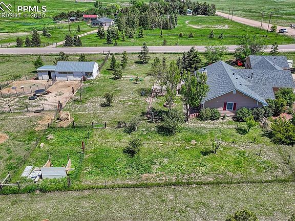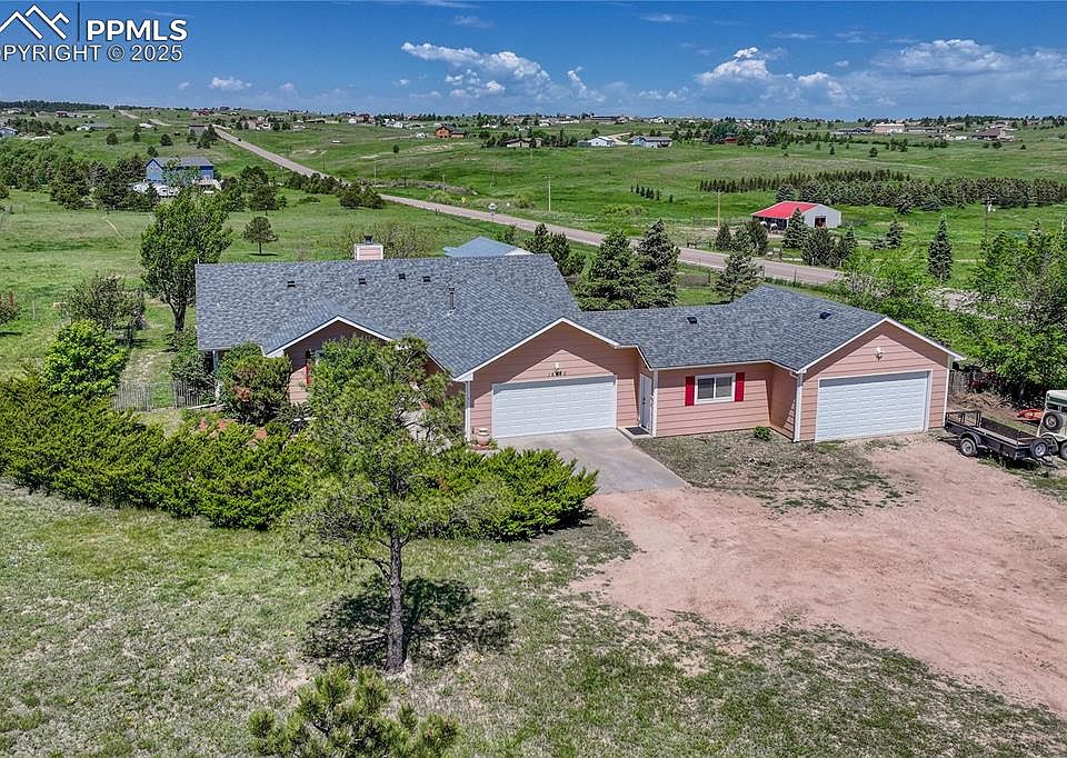 Experience the Best of Country Living. Set on 3.5 serene acres in Black Forest, this extraordinary property captures the essence of peaceful rural living with stunning panoramic views of rolling meadows and snow-kissed Pikes Peak. Plus the bluffs around Homestead Park. Thoughtfully designed to embrace both comfort and character, the residence offers a seamless blend of rustic charm and modern livability. Step into light-filled living spaces warmed by a cozy fireplace, and gather in a well-equipped kitchen made for both meals and memories Retreat to a spacious primary suite complete with a newly updated en-suite spa bath with steam room and walk-in closet. Whether you're sipping morning coffee on the huge deck or hosting friends beneath the open sky this a truly a great place to live. Beyond the home, the land opens up to a world of possibilities. Fully usable, fenced, and horse-ready, it’s ideal for livestock, agriculture, or simply stretching out and enjoying the quietude. With a 4-car garage, ample space for RVs and trailers, a loafing shed, and room to build barns or arenas, your vision—be it a family sanctuary, working homestead, or equestrian retreat—can come to life without compromise. Free from HOA restrictions and supported by a private well and septic system, the property is zoned for both agricultural and residential use. Located 20 minutes from Colorado Springs and Monument, you’ll enjoy the perfect balance of privacy and accessibility. This is more than a home—it’s a lifestyle. One of open skies, endless potential, and quiet moments that remind you why you love the country. Schedule your private tour today and step into the freedom and beauty of Black Forest living.