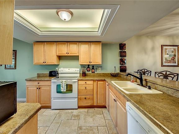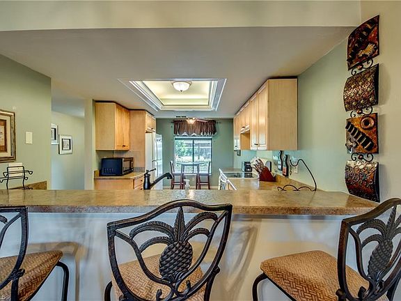 AMAZING PRICE for this REMODELED and nicely DECORATED unit. Truly the nicest unit under $140K in Kelly Greens! Relax with your favorite person and beverage while taking in the spectacular SWFL sunsets from your private lanai on Kelly Greens' "Sunset Row!" Here is your opportunity to own a beautifully updated first floor condo right on the golf course! Your new home comes turnkey with modern furnishings and fixtures, travertine tile throughout (even on the lanai!) and soft carpet in the bedrooms. Don't worry, there's plenty of space for you as well as privacy for your guests. Unit includes reserved covered parking space and enclosed storage space. Conveniently and centrally located near all the fun, within the community and beyond! Short drive to Fort Myers Beach, Sanibel Island, downtown Fort Myers, shopping and restaurants. Hurry, and you will be enjoying a sunny winter in SWFL! Not ready to enjoy it in person yet? This unit also had great success as a 30- day rental throughout the year. The best conditioned units command the highest rental prices!