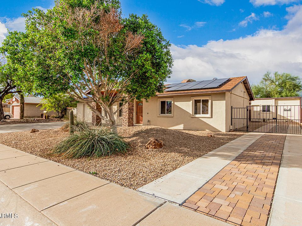 The search is over! This energy-efficient home is the perfect gem for you! It welcomes you with a cozy living room, complete with tile and wood-look floors, and a formal dining area. It features a family room ideal for making cherished memories. The kitchen is equipped with stainless steel appliances, granite counters, wood cabinetry, and a breakfast bar. The main bedroom offers a walk-in closet and a private bathroom for your comfort. Extra features include a spacious storage structure w/electric that is also suitable for a workshop. The backyard is a relaxation haven, boasting covered patios, paver seating areas, a built-in BBQ, a fire pit, and ample space for various activities. Additionally, there's an RV gate and parking. Must see to appreciate!! No HOA