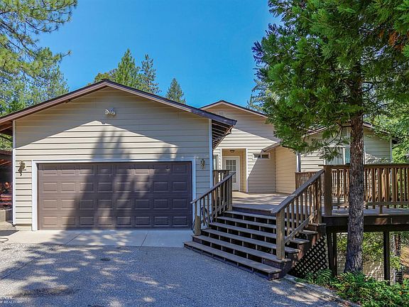 Look past the front deck railings.The railings are being replaced by the company that made the material.This is really a fun house. You can be in the kitchen and have all your friends and family in front of you enjoying a open beamed ceiling family room with a great fire place,or you can sit at the breakfast bar when there are only a few of you. Spacious family room opening to an even more spacious living room. Master bedroom has slider to out side deck,Great outdoor ambiance with a large deck and hot tub with lots of pine tree scenery around and acres of privacy.A lot of tender love and care has gone into this home. The owner has enjoyed it and is sure that you will also.