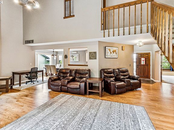 The seller will contribute $10,000 towards buying down the Buyer's interest rate or towards the Buyer's closing costs!!! Located in the highly sought-after Copper Creek Neighborhood, this beautiful home is well-maintained and move-in ready. The open layout is homey, inviting, and filled with natural light, while also providing incredible privacy. The spacious living area with soaring ceilings and a cozy gas fireplace is perfect for entertaining, opening seamlessly to the adjacent dining room and modern kitchen with a breakfast bar, granite countertops, and stainless steel high-end appliances. Those floors are real solid oak and in great condition. All updated Vinyl windows. Guests will love the large deck w/gas hookup, overlooking the mature trees and babbling creek. The master suite is huge and features an incredible walk-in closet and an updated bathroom with a skylight. The low-maintenance yard backs to a green space. Plus there is also room to grow and add value with the unfinished 731 Sq Ft basement (which is not included in the total square footage). The home is located less than a block from the 79-acre Cook Park, which features playgrounds, nature trails, hot-air balloon festivals, fireworks, and holiday parades. Additionally, there is boat ramp access to the Tualatin River, which provides a daily kayaking opportunity. Shopping at Bridgeport and TJ's is also nearby. This home is a must-see!