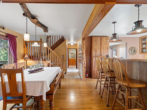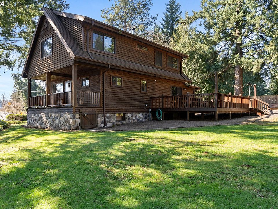 Gorgeous rustic retreat on the outskirts of Oregon City. This property features a craftsman-style 2-story house with cedar siding & hand split shakes and a shop with an oversized bonus room on nearly an acre (.85) of lush yard and woods. As you enter, you'll immediately feel the warmth of this home. Pride of ownership shines through on this one. The kitchen and dining area feature solid oak hardwood floors, custom maple cabinets, a cook island with an inviting breakfast bar and plenty of storage room and counterspace. The kitchen is truly the heart of this home. As you move to the living room, you'll be welcomed by a seasonal view of Mt. Hood through the large picture window. The wood stove is capable of heating the entire house should you choose. As you venture up the custom log post & railing staircase, you'll enter a hallway/sitting area with a custom log ladder leading to a hidden nook above. The oversized primary bedroom includes a walk-in closet, soaring vaulted ceilings and another seasonal view of Mt. Hood. Across the hall are two additional bedrooms with spacious closets and vaulted ceilings. The 960 sq ft unfinished basement is currently used for storage but has potential for many other uses. Outside, you'll notice the house sits above S Henrici Rd for added privacy. The 28'x32' shop includes 220 power, concrete floors, barn style doors and a large 14'x31' conditioned bonus room. Down over the hillside to the right of the shop is a firepit, perfect for cozy gatherings, tall tales and s'more roasting. Enjoy all that nature has to offer in the pleasantly private and spacious backyard. Enjoy entertaining? The large deck, just off the dining room, is perfect for gatherings. Plenty of parking available onsite. Appraisal done in April of 2023, came back at $690,000. Please do not disturb owners.