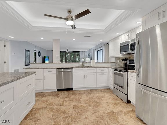 OFF SEASON RATES; SEPT, OCTOBER, NOVEMBER, DECEMBER AND SEASONALLY JAN-MARCH CALL TODAY FOR RATES FOR SEASON.Lovely light and bright updated corner 2/2 with first floor convenience. Available for season 2026 or annually. Brant new kitchen cabinets, counters, stainless appliances, washer and dryer. New window treatments, updated guest and master bath areas. Expansive lanai with golf and lake views yet private. Covered parking. The condo is located in a gated country club community called THE FOREST. Close to international airport and area beaches. If seasonal rental is more desired condo can also be rented seasonally Jan-April 2026 for 5,000 per month. Hurry seasonal rentals going fast.