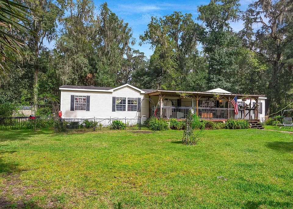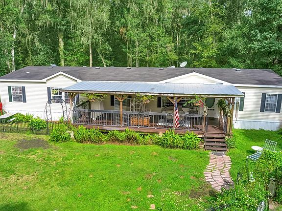 PENDING, ACCEPTING BACK-UP OFFERS! This beautiful 10 acres and elegant manufactured home in such a private setting in one of the most beautiful areas of Brooksville! Wooded with oaks and trails meandering throughout the property. Fenced in area in front of home with fruit trees (Orange, Tangelo, Lemon, Avocado and Mango) and pretty greenery. Fenced in area in back, also, will keep pups contained. Large polebarn with loft, gazebo and large covered front porch make outdoor entertaining a breeze. There are 2 living rooms, a separate dining room (both china cabinets can stay), large kitchen with a big island and lots of storage. Very large Master Bedroom with en-suite bathroom with a very large walk-in closet, a private water closet in both bathrooms, a large garden tub and there are showers in both baths. Laundry room with build in storage and a door leading to the back yard. This is a fabulous property you don't want to miss!! Easy to see, call today to take a tour!! Seller will provide a 1-year home warranty to buyer. All measurements are approximate, not guaranteed and should be verified by buyer/buyer agent. Information contained herein critical to the buyer's decision to purchase must be verified by the buyer, including school districts, flood zones, county zoning and land use.