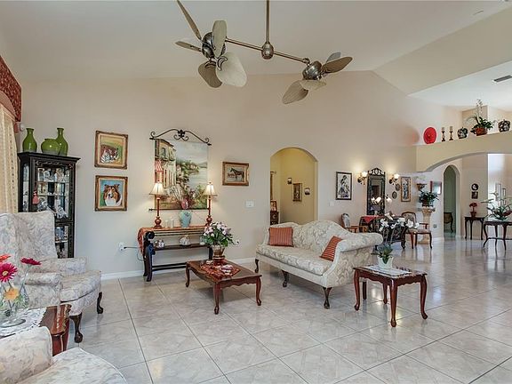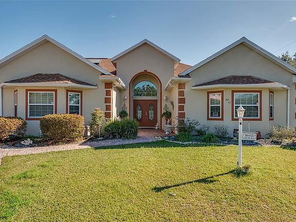 Welcome to this elegant 3 BR, 2.5 bath pool home with attached 2 car garage. With over 3300 SF of living space, this home boasts amazing curb appeal, along with beautiful, tropical landscaping and a paver driveway all on a .72 acre homesite. Enter through the double lead-glass front doors to an open floor plan with formal living and dining rooms. The chef's kitchen is spacious with granite counters, island, HUGE breakfast bar, stainless steel appliances, eat in space, and tile backsplash. There is a sliding door off of the kitchen to the covered lanai and pool area. The kitchen opens to the living room area, with another set of sliding doors to take you outside. The owner's suite is a generous size with tray ceiling, ceiling fan and ensuite bath with granite counters, dual sinks and huge walk-in closet. The additional guest rooms are both a nice size with plenty of closet space. The guest bath features granite countertops. There is a bonus room/workshop with a wall of cabinets located off of garage that is currently being used as a hair salon. The outdoor space is perfect for entertaining: gorgeous sparkling pool, covered lanai, outdoor kitchen with granite countertops and sink, plus an outdoor shower. The yard is fenced and there is also a shed for additional storage. Make this impressive home yours - call today to schedule a showing.