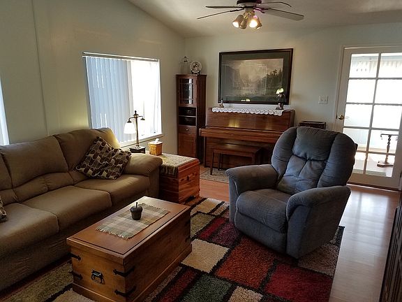 2 Bedrom + Den/ Office 2 Bath *** Corner Lot *** Wood Flooring *** Upgraded Kitchen with lots of Cabinets *** BIG Front Living Room *** Low Space Rent 55+ Community