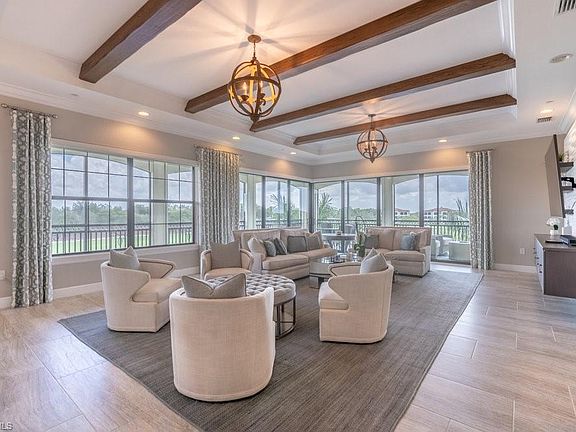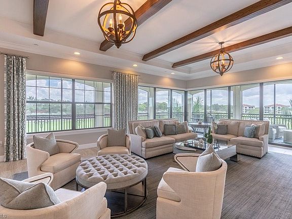 Top floor "Penthouse” Carrara condo comes FURNISHED professional decorated by Design West! Truly unique unit unobstructed views all around. Amazing waterfall/rock feature and golf course views from hole 1 outside your loggia areas, kitchen, and primary bedroom. Large rectangular porcelain tile floors, and wood beams in the living area. White cabinetry in the kitchen with natural gas range for cooking. Automatic storm screens blend in seamlessly as they are the same color as the walls. 2 assigned parking spots on ground floor with additional private storage space and room to park a golf cart. “Carrara” @ Talis Park includes 90 individually owned finished & built out spacious units of maintenance free condo living. Private community pool, spa and grills just for the street. Talis Park's newly renovated golf course and driving range was designed by Greg Norman and Pete Dye and is ranked by Golf Digest as one of Florida's top 20 courses. Short bike ride or golf cart drive to the clubhouse (voted Clubhouse of the year 2016 by Golf Inc. Magazine!) Core Fitness Center, Esprit Spa, and Fiona’s Market Café. Expanded clubhouse rotunda bar area, fitness center, dog park. The community Sports Complex has 5 tennis courts, 4 pickleball courts, and bocce. A Sports Membership purchase is required.