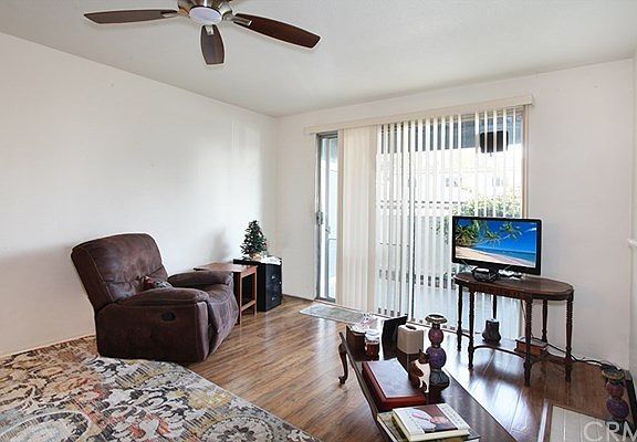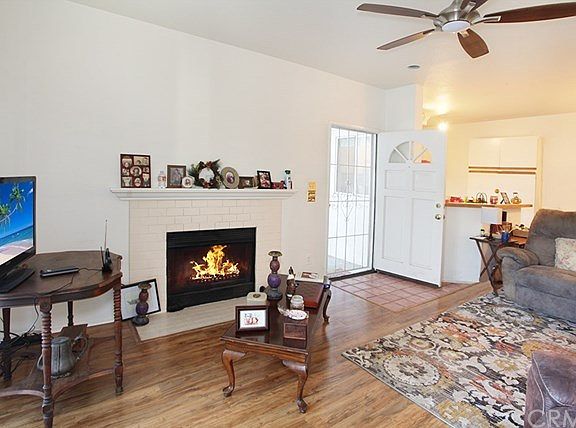 This spacious one bedroom home is conveniently located on the ground level of the well maintained gated community of New Chase. There are no steps, it's all one level nestled in the private area of the complex. The home features a full bathroom a large bedroom, private patio, indoor laundry, new laminated wood floor in dining room and living room with a fireplace and ceiling fan, and a nice size enclosed patio with a beautiful bougainvillea tree. The amenities include an attractive pool area with cabana style covered seating and 2 spas. The grounds have immaculate landscaping and the complex was recently renovated throughout. There is ample guest parking and easy access to the freeways and shopping. This is an FHA approved community. Fountain Valley is: "A nice Place to Live".