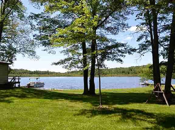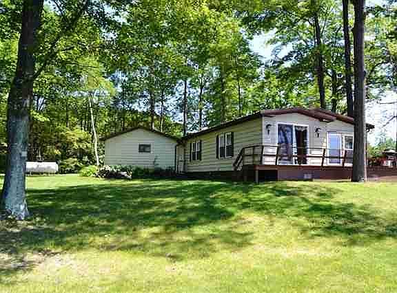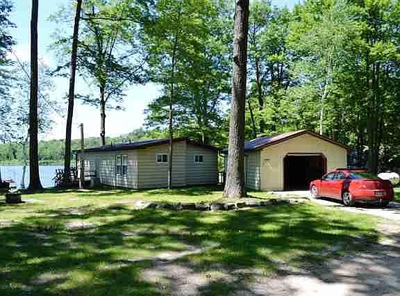 Nicely kept home on Goose Lake with a garage. This 2 bedroom 1 bath home has large windows on the lake side allowing you to see gorgeous views of the lake. The open floor plan in the living area makes it feel quite spacious. Relax on the deck, fish, boat, swim...there is something for everyone. Beautiful westward facing views result in great sunsets over the lake. Additional adjacent lot available for purchase. LAND CONTRACT terms available.