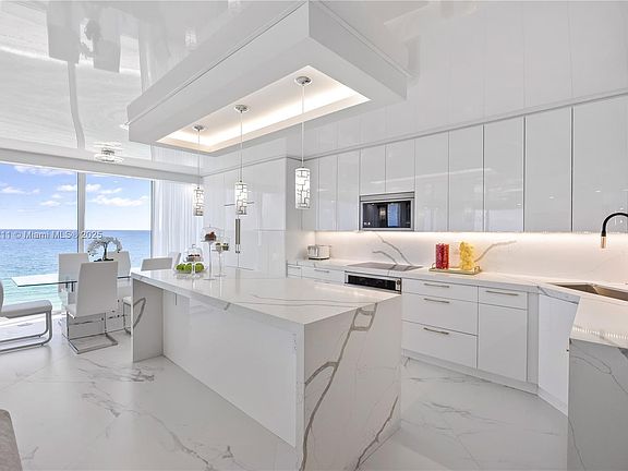 Bask in the direct ocean view from this completely remodeled 3 bedroom, 2.5 bath residence. Entertaining is a pleasure with this open concept floor plan, a large kitchen island, plentiful custom cabinets, quartz countertops, Bosch coffee station and stainless sink. Some of the designer finishes include 48"x48" white/grey matte porcelain tile, stretch ceiling, high gloss white cabinets with goldtone cabinet hardware, LED lighting and electric curtains and blackout shades. All windows and sliding doors are hurricane impact glass. New A/C ducts, vents and a powerful 4 ton HVAC. Unit is being offered turnkey. The Oceania community features an amazing health club & spa, full service private beach club, fitness classes, racquetball, 2 oceanfront dining rooms, tennis, marina and more!