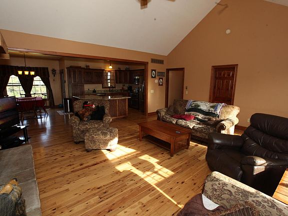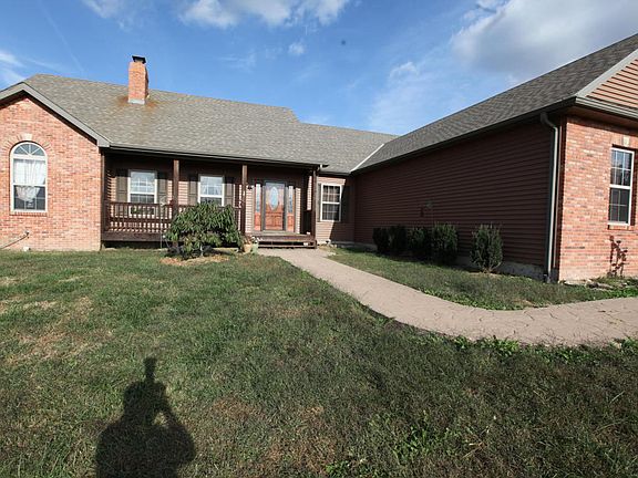 What a view! Brick and vinyl sided 6 year old Ranch with stamped sidewalk, 3 car attached garage and amazing views. The open concept floor plan features Australian Cypress hardwoods, a stone wood-burning fireplace and kitchen with granite counters and custom cabinetry. Master suite features his and her closets, jacuzzi tub and dual sink vanity. Two secondary bedrooms, 1.5 baths, and a bonus and laundry room complete the main level. The unfinished 1900 sq. ft walkout basement is begging to be finished. As and added perk, enjoy the 40x50 concrete floored outbuilding with 100AMP electrical service. Welcome Home