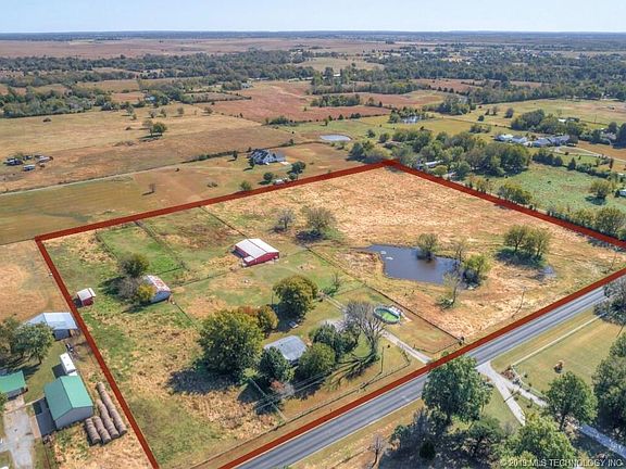 Ride 'em cowboy on this 10.21 acres M/L. 2 barns, outdoor horse runs, loafing shed, pond, horse corral. Electricity in main barn, 5 stalls, and tack room with bathroom. Charming 1 bed 1 bath ranch style home, large living room/dining combo, with hardwood floors, walk in master closet, updated kitchen, and enclosed front porch.Has all the landscape features possible.