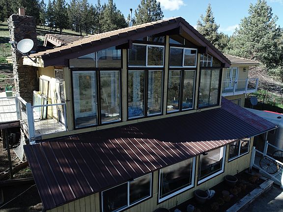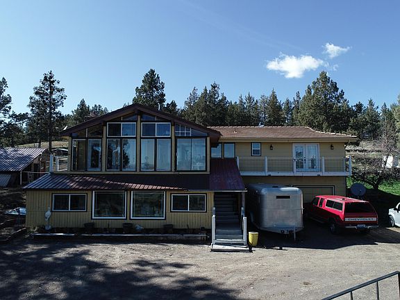 MOTVATED!! Enjoy the panoramic views of the rolling hills, valley floor, distant mountains, and an abundance of wildlife. Well maintained spacious home sits on 158 acres(3 parcels), with large barn, chicken house, insulated 40x80 shop, greenhouse, and extra storage sheds. Home features large windows, rock wall fireplace in the living room, large kitchen w/under the counter lighting, gas cooktop, convection oven and tile floors. Start your day with breakfast in the southern facing sun room and end it with a get together on the back deck. Laundry room, updated jack and jill bathroom, primary bedroom featuring a walk in closet, large walk in shower, access to a private balcony and an additional bedroom make up the main level. Finished basement has two more bedrooms, bathroom w jet tub and walk in shower, and additional living space with kitchen and outside access, could work for multi-family living!! The attached 2 car garage has shelving, work area, and a pellet stove.