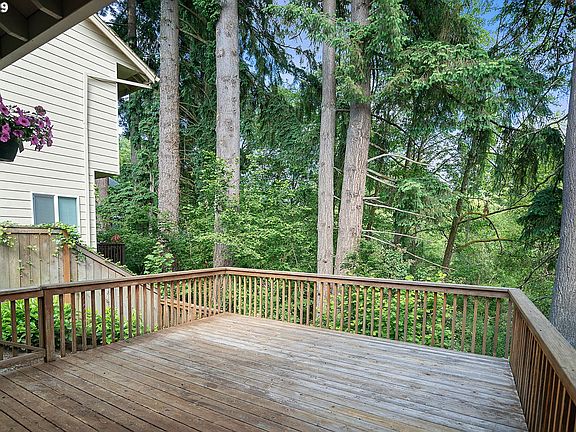 This well-maintained home backs up to a protected and wooded area of Stella Olsen Park. Bright and open floor plan featuring vaulted ceilings and wooded views. Loft. The fourth bedroom on the main floor. Bright kitchen with great appliances. Master suite overlooks serene woodlands. Covered front porch with a big gated deck. Great location. Minutes walk to Old Town Sherwood with shops and library. Located at a cul-de-sac.