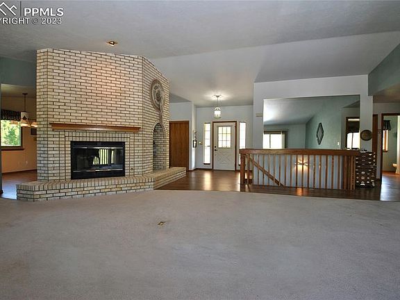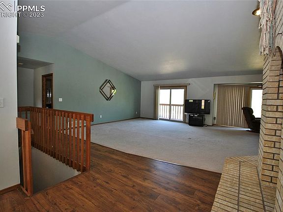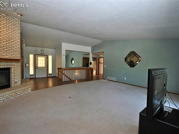 VIEWS ON TOP OF VIEWS!! This walkout rancher overlooks Ute Valley Park all the way to Pikes Peak and Cheyenne Mountain. All 1 level living with Main level laundry and all living areas. Wood floors grace most of the main level with engineered wood/LVT in other areas. Great room concept with gas fireplace accenting the huge living and dining areas. The big eat in kitchen with island has all the appliances and solid wood cabinets. Spacious Master suite is highlighted by double vanity and tiled shower. Newer roof and stucco exterior. Central A/C and 50 gallon water heater and Custom window coverings finish this District 20 rancher.