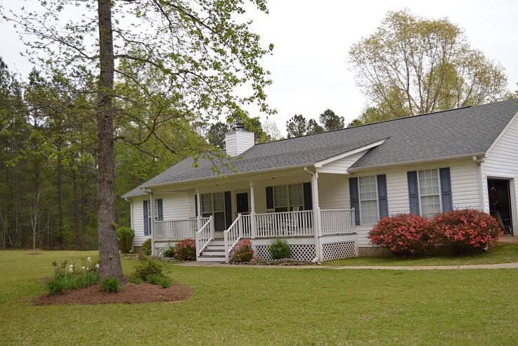 PEACE AND SERENITY AWAIT YOU! Just minutes from I-85. Cozy Country Ranch Home with rocking chair porch situated on 2.65 acres. Moreland Elementary school district. 3 Br/2Ba. Remodeled kitchen w/granite countertops, tiled backsplash, custom cabinets, butler's pantry, stainless steel appliances include refrigerator, range/oven, built-in microwave & dishwasher. Pergo wood flooring. Living room w/stacked stone f/p. Split bedroom plan. Master bedroom w/jacuzzi tub/separate shower & tile floor. Large deck & outdoor patio area - Great for entertaining! Shop w/electricity, lighting & pull down ladder to attic w/plenty of storage!