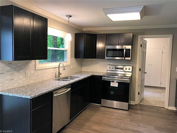 Fantastic home in desirable Pfafftown location. Stylish kitchen with new cabinets, granite counter tops, ss appliances, and tile back splash. Move in ready with a ton of new upgrades including: new carpet, paint, replacement windows, vinyl siding, and recent roof. Tons of space in this one with dinning room, eat-in kitchen, living room, great room, sunroom, and huge unfinished space perfect for storage/workshop(23 x 22) or could easily be finished for extra square footage. Adjoins future site of new park.