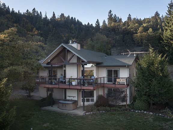 This property offers a truly beautiful and private setting with outstanding views. The home welcomes you with a grand entrance featuring a large rustic staircase. Both the scenic views and a river rock fireplace draw you into the living room, which boasts vaulted ceilings.The primary suite is a serene retreat, complete with sliding doors that open to a private deck, two walk-in closets, and an en-suite bathroom offering a separate tub, shower, and double vanity. The kitchen and dining room also feature sliding doors, providing seamless access to the main deck, perfect for entertaining or enjoying the outdoors. Practical amenities include a double-car attached garage and an impressive 28 x 50 shop with a full bathroom and laundry hook-up. Additionally, there is a separate tool shed with a concrete floor and power. There are approximately 3-acres with an invisible fence system, ensuring pets can safely roam. The property also features a fenced garden area with raised beds.