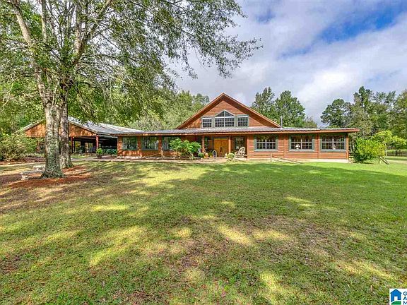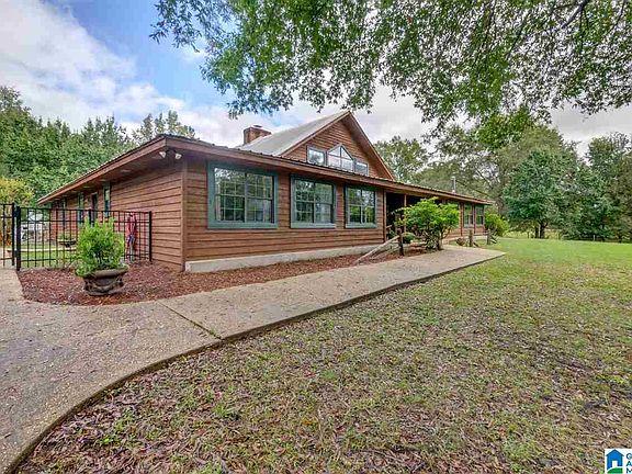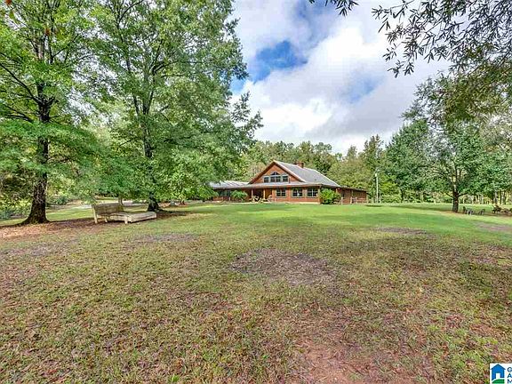 THE GREAT ESCAPE awaits you in Jemison, Alabama. This custom 1.5 story rustic lodge-style home is secluded and sits on 10 beautiful fenced acres. Its full of nature and situated near Anderson Lake 10 minutes from I-65. The builder made space for everyone when he included 5 spacious bedrooms and 3 full bathrooms. The interior is stained with v groove pine walls and beamed ceilings! Stunning oak and slate flooring throughout. This home was definitely built by craftsmen with attention to detail. 30 ft cathedral ceilings with fireplace to ceiling in massive Great Room. Huge Master with fireplace, large Master Bath with giant walk-in double closets and jetted tub. Large, open kitchen with solid surface countertops, walk-in pantry, center island and dining room to seat at least 12. Off the kitchen is a large room for office/study or rec/pool room, or second den. Acreage is flat to rolling fenced pasture with large hardwoods. Covered, inground pool. Fruit trees, too much to mention.