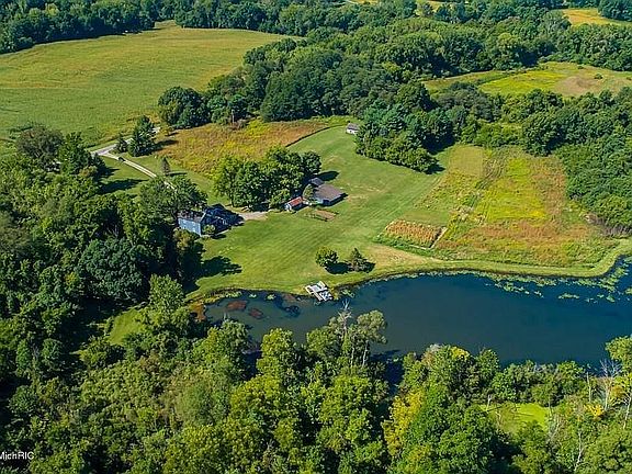 Stunning 68 acre wooded retreat in the Heart of Wine Country with post & beam 4 bed, 3 bath farmhouse overlooking your own private pond is a must see! Open concept kitchen, dining and family room with stone fireplace is the heart of the home. Sliding glass doors from the main floor master and living area spill onto the spacious deck and covered porch. 2nd floor sitting area and loft space is an artists dream or a childs spectacular playhouse. In addition to 3 outbuildings, a historic log cabin built in 1837 is nestled among the prairie grasses on a hill. Explore the wooded trails that wind through this nature lovers paradise. With 2,000 ft. of road frontage, 9 property divisions are available. Create a family compound or keep it all to yourself. 90 min from Chicago. Plan your escape today!