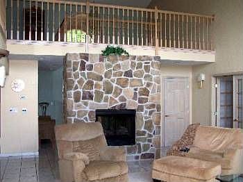 Beautiful setting with 1/4 acre pond. Open floor design with 2 story entry and double sided stone deck w/hot tub, fire pit, surround sound, security system. 2nd. floor loft w/view of pond. Jack & Jill Bath.