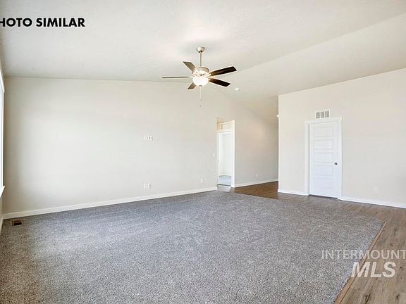 The Shoshone by Agile Homes is a single-level home with a spacious split bedroom design and features 3 bedrooms and 2 baths w/ an insulated 3 car garage. This home is a top favorite. Located on a corner lot & close to schools in Emmett in the new Dagger Falls subdivision. The vaulted ceilings and large windows and 9' ceilings allow for an abundance of natural light to flow throughout. The kitchen features our biggest island, custom cabinetry, granite countertops, upgraded stainless steel appliances, including a fridge, and has a generous sized butlers pantry. Escape to the spacious 14x17 primary suite that features dual vanities, and tile walk in shower. This new home features front sod, rear seed, full auto sprinklers, pressurized irrigation, and a fully fenced in backyard. Enjoy summer evenings on the covered back patio. Overall, the Shoshone is a well-executed floorplan with a great entertaining area. Photos are similar/not the actual home.